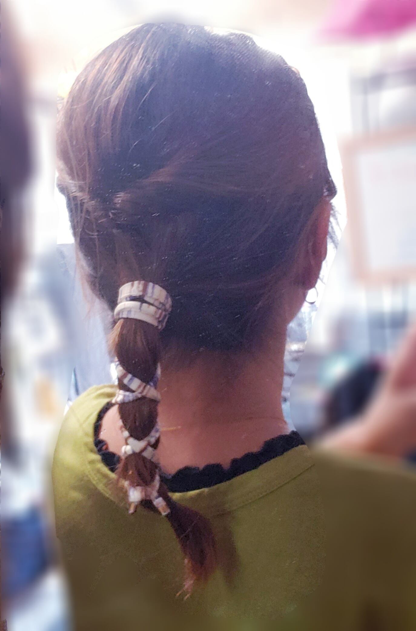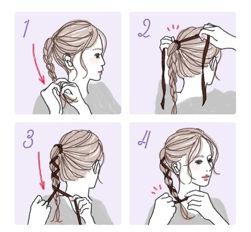 ポニーテールのゴム部分に巻いたり、毛先に向かってクロスさせたり、好きな位置へネジネジ!
